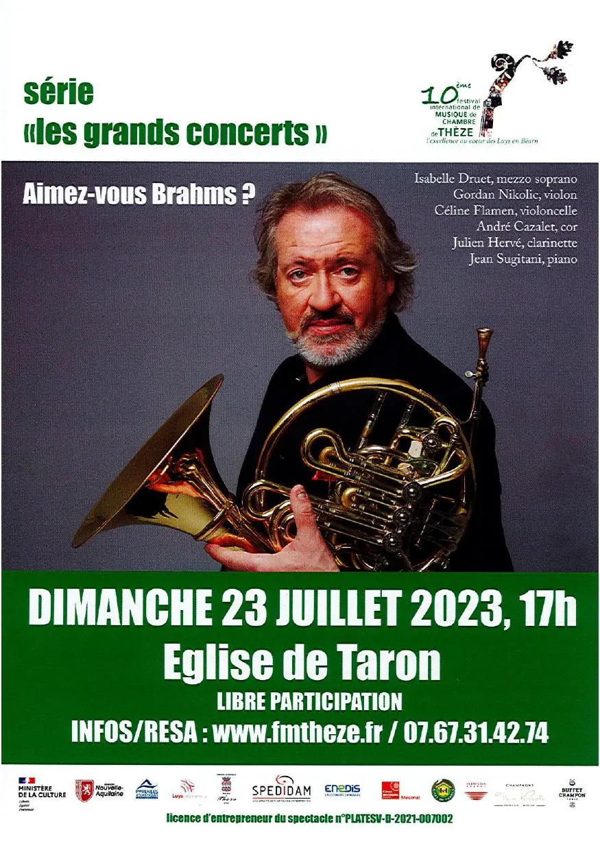 La Communauté de Communes des Luys en Béarn et Mme GRACIET du château de VIVEN, organisateurs du "10ème festival international de Musique de Chambre de THÈZE", ont choisi notre église pour un magnifique concert qui aura lieu le dimanche 23 juillet 2023 à 17h.